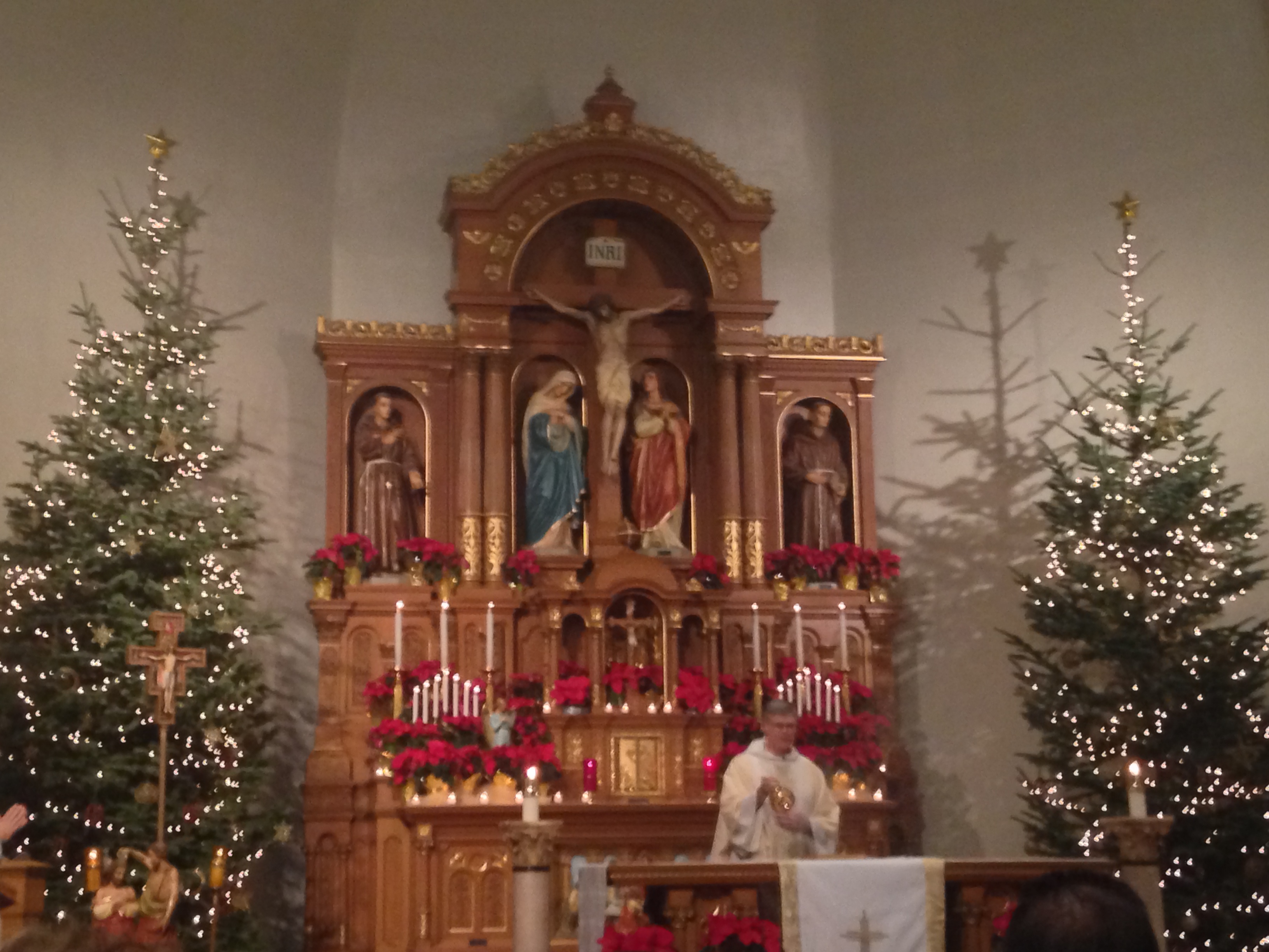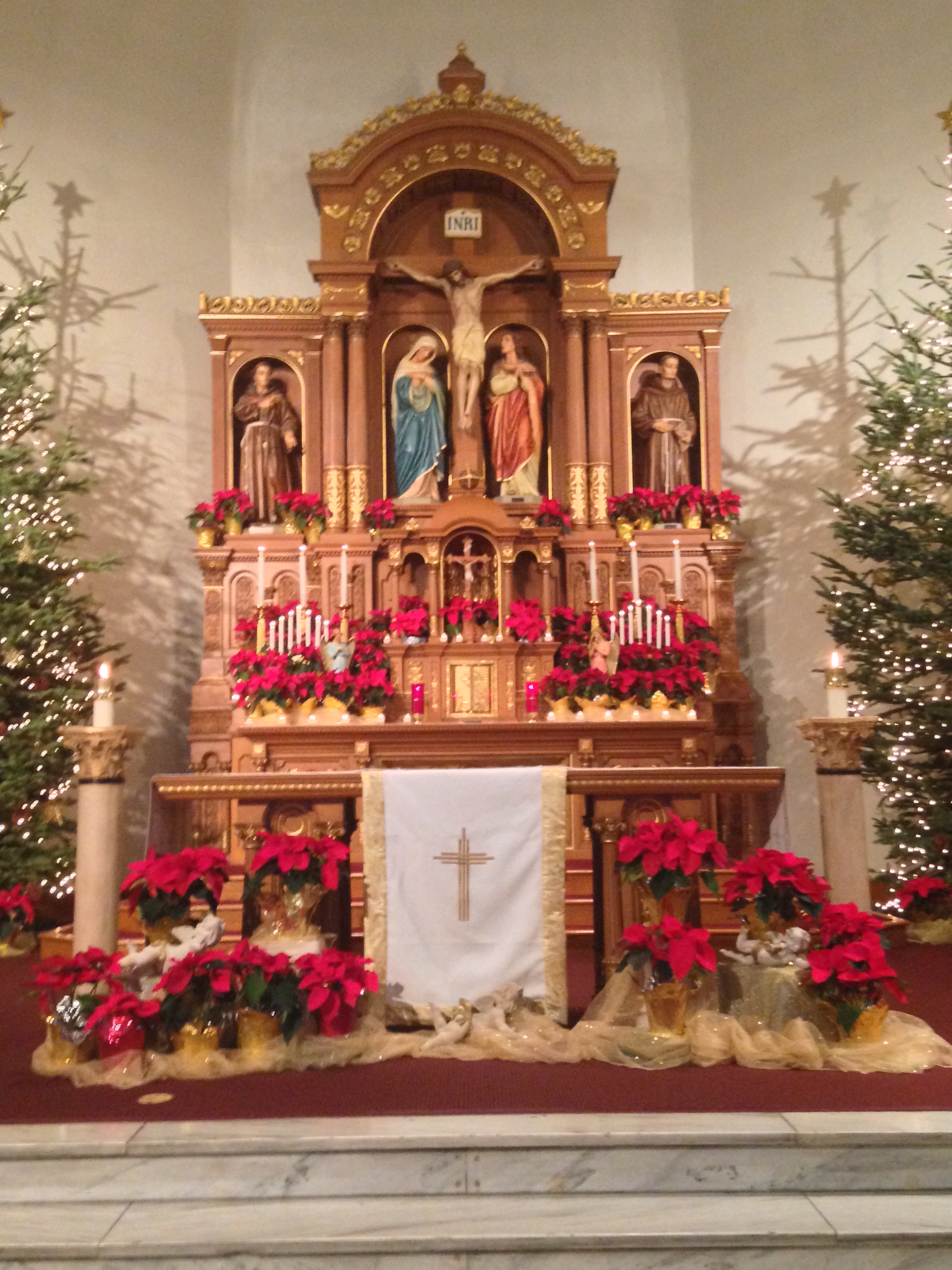 As the Christmas Season came to an end on the Feast of the Baptism of Our Lord, the joy of welcoming the Christ Child in this world has not ended. On this Feast day, Sunday, January 11th, we went to the Holy Sacrifice of the Mass at St. Mary’s Basilica in Phoenix with the Franciscan Friars. The main celebrant of the Mass was Father Michael Weldon, OFM. He is a happy priest whose exuberance and depth came through as he preached about living the Christian life fully. It is by the graces of our baptism that we are incorporated into the family of God for holiness. The gift and spirituality of the Franciscans were made visible with the Christmas crèche (nativity scene) and the dignified liturgy. The beauty of St. Mary’s Basilica and the stained glass windows are also the fruits of the service of all the Franciscan Friars throughout its history.