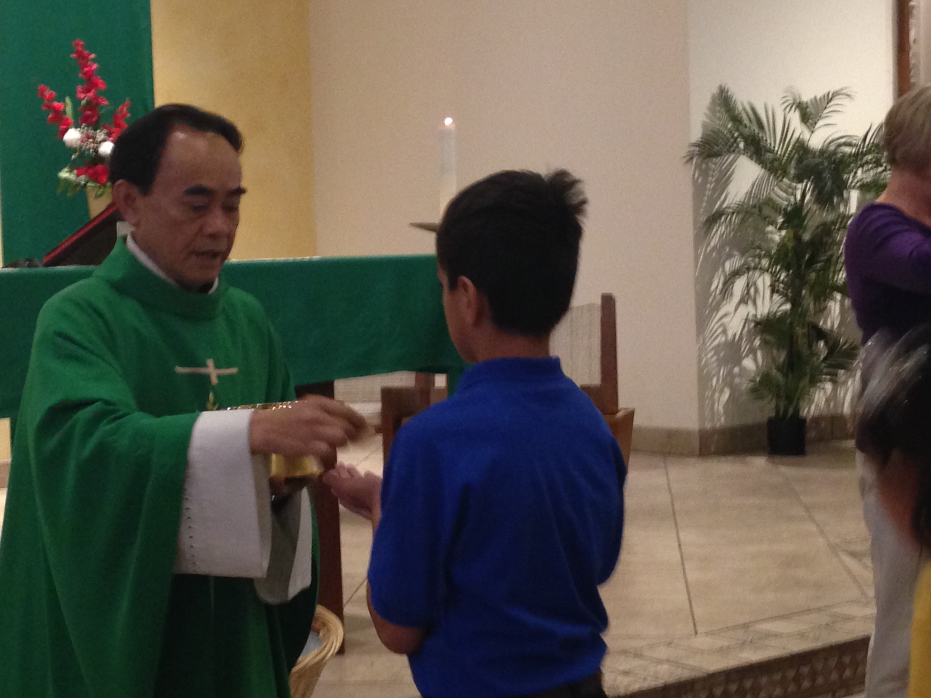 Vietnamese Priest, Fr. Joseph Bui, PIME is a Religious Order Priest of the Pontifical Institute for Foreign Missions founded in Italy in 1850 as an International Society of Apostolic Life which now has 500 members in 17 countries with a mission for the proclamation of the Gospel. As the Pastor of Saint Louis the King Parish in Glendale he is an example of living the joy and fullness of the Christian life as both a Religious and a Priest. Nicknamed “Fr. Happy,” he is dedicated to the spiritual needs of his Parishioners and the students at St. Louis the King School. On Wednesday, January 14th, I gave my vocation testimony to those at the 8 a.m. school Mass.
