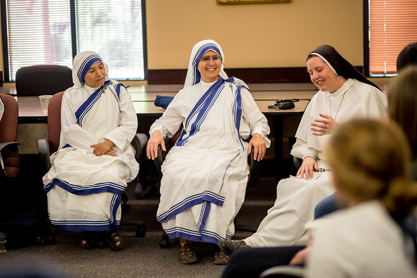 The week before, on Saturday May 2nd, we had our first FIAT Discernment Morning for Women at the Diocesan Pastoral Center with 15 women desirous to know more about Consecrated Life and Sisters from 5 different Religious Communities who gave their vocation stories. Those communities who came were the Missionaries of Charity, the Dominican Sisters of Mary, Mother of the Eucharist, the Daughters of Charity, the Religious Sisters of Mercy of Alma and the Parish Visitors. We began with 9 a.m. Mass in the Chapel celebrated by Father Paul Sullivan, and then we gathered for a vocations panel and Q & A discussion. The morning was joyful, delightful and fruitful for all who were there, including staff from the Catholic Sun.