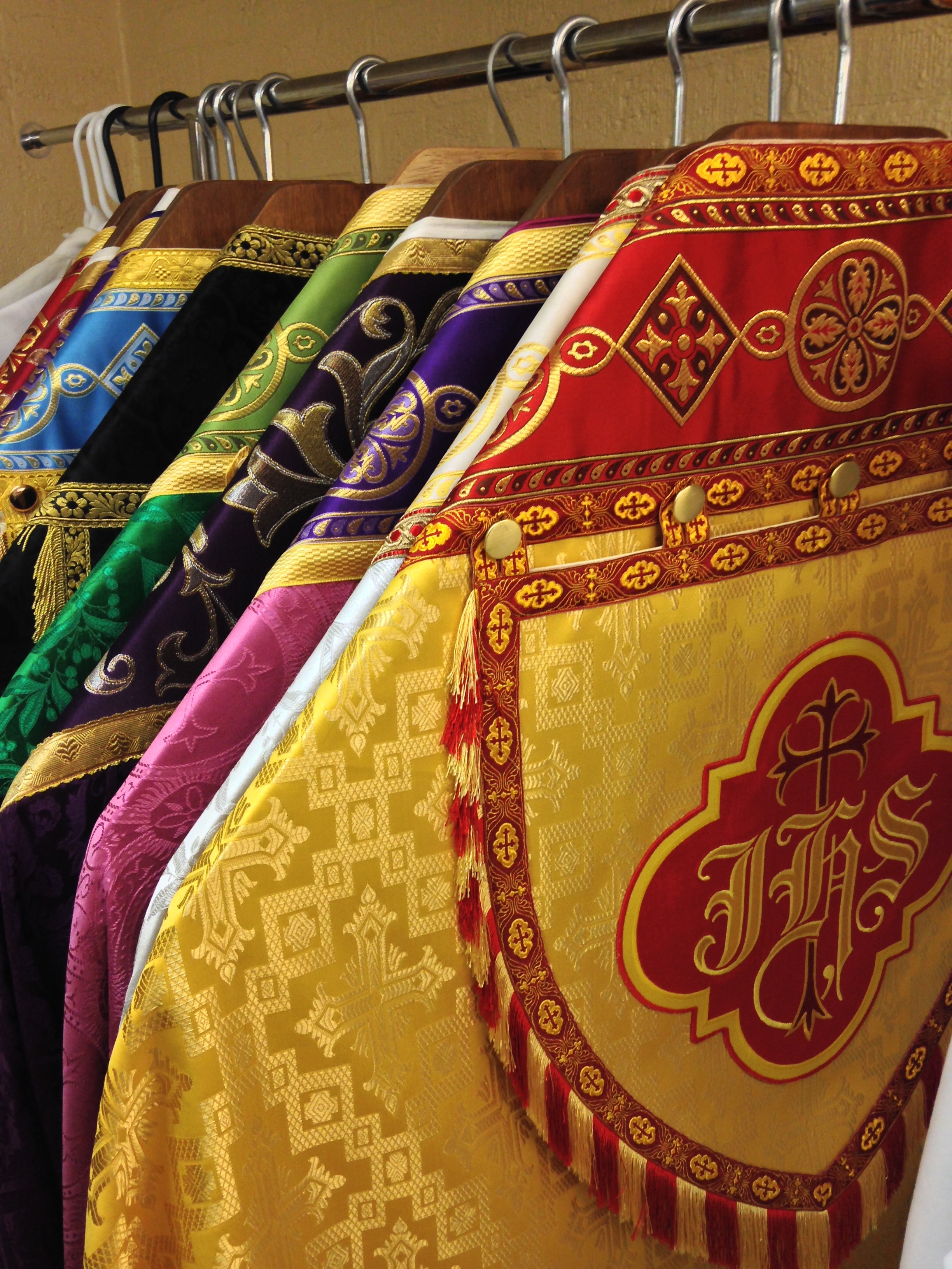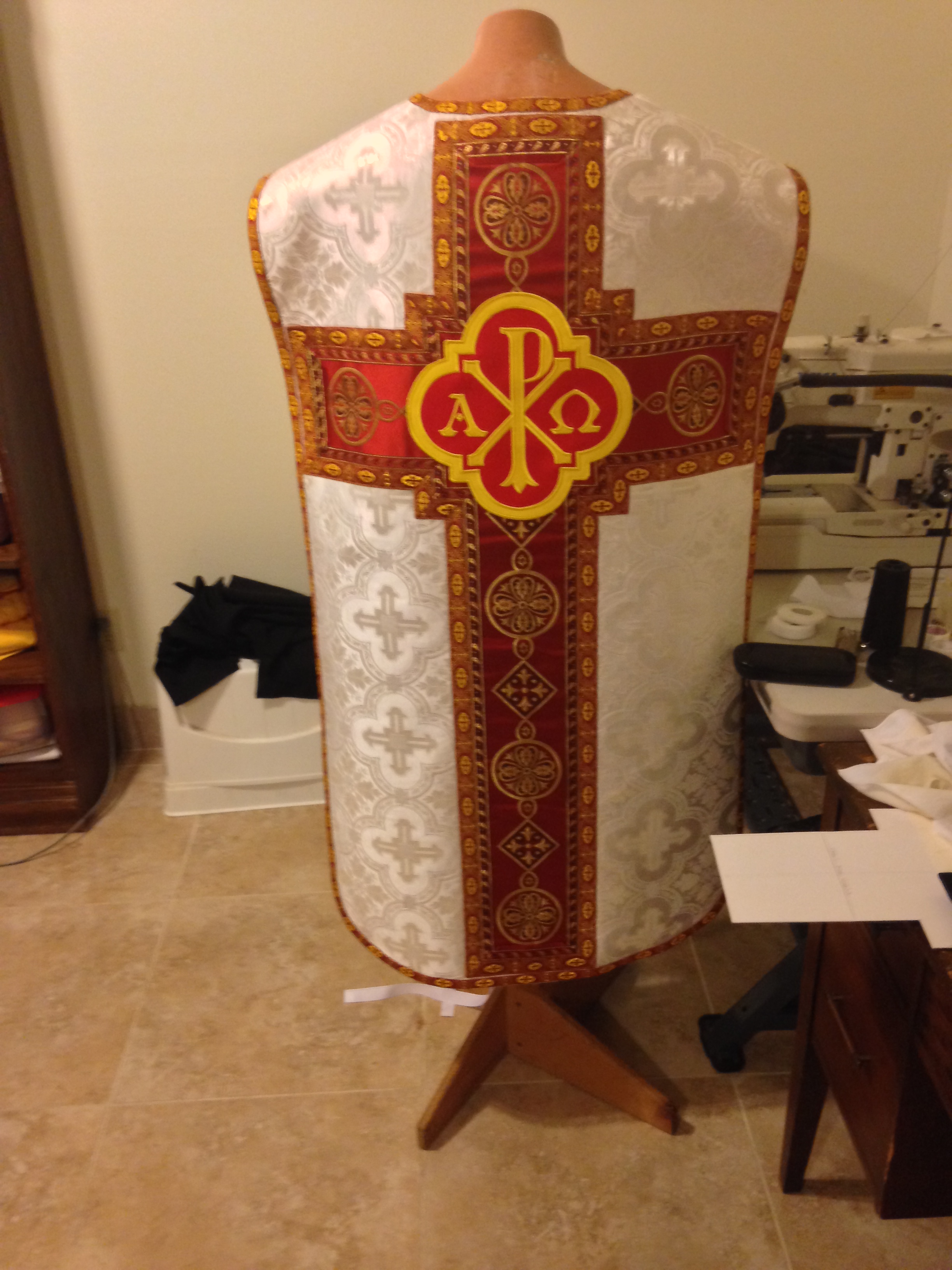 A priest would wear this for the Holy Sacrifice of the Mass.