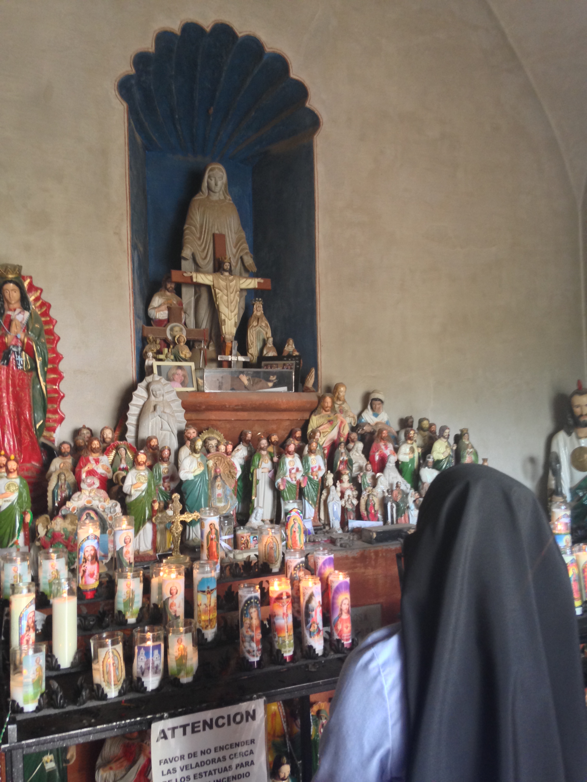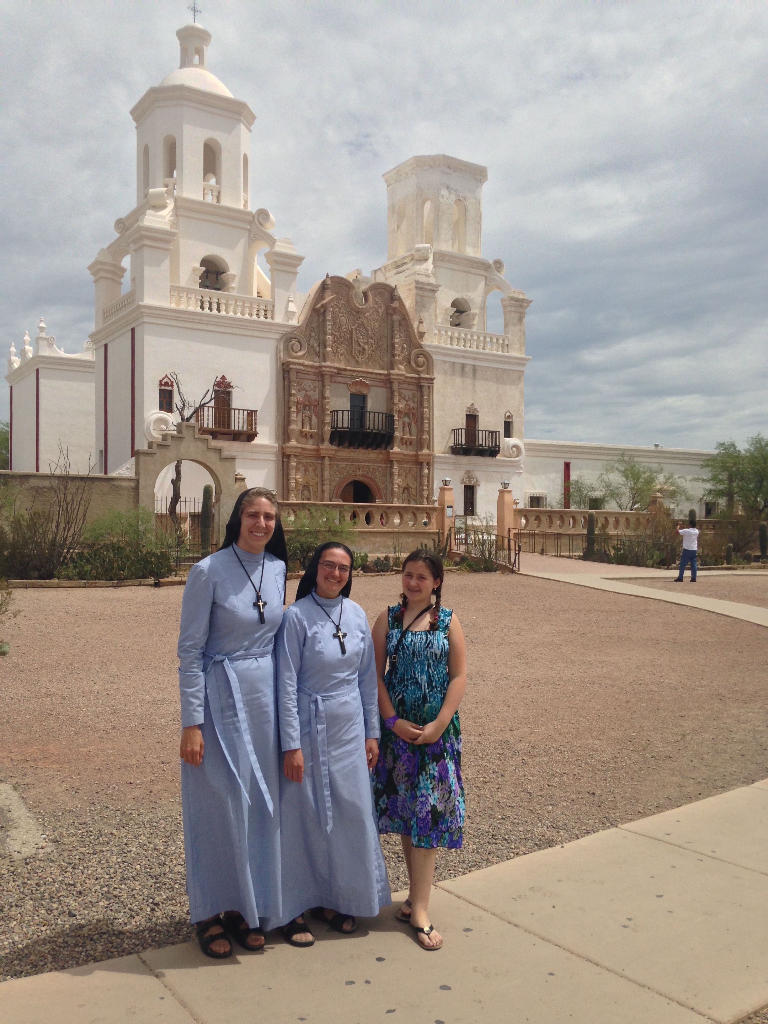 On the Feast of St. James the Greater, July 25, we went to visit San Xavier Mission in Tuscon, where Padre Eusebio Kino, S.J. founded the Catholic Church in Arizona. It is a sacred place where pilgrims come to pray and ask Saint Francis Xavier for help, favors and even miracles. There are Masses celebrated here as well as Spanish style sacred art and statues that life the heart and mind to God in prayer.