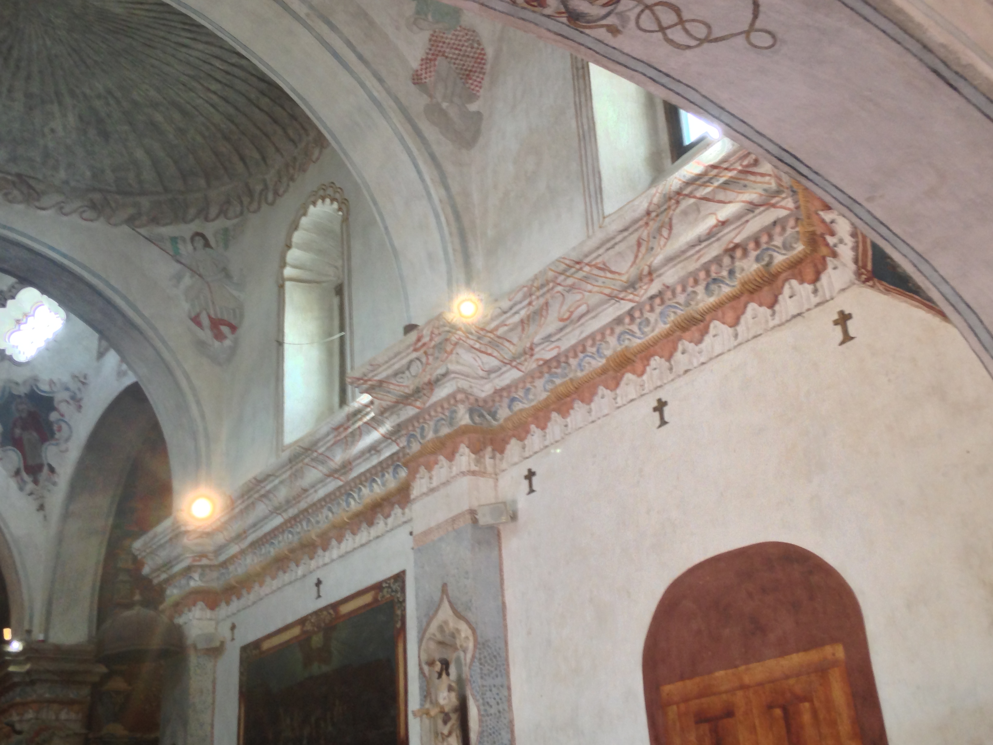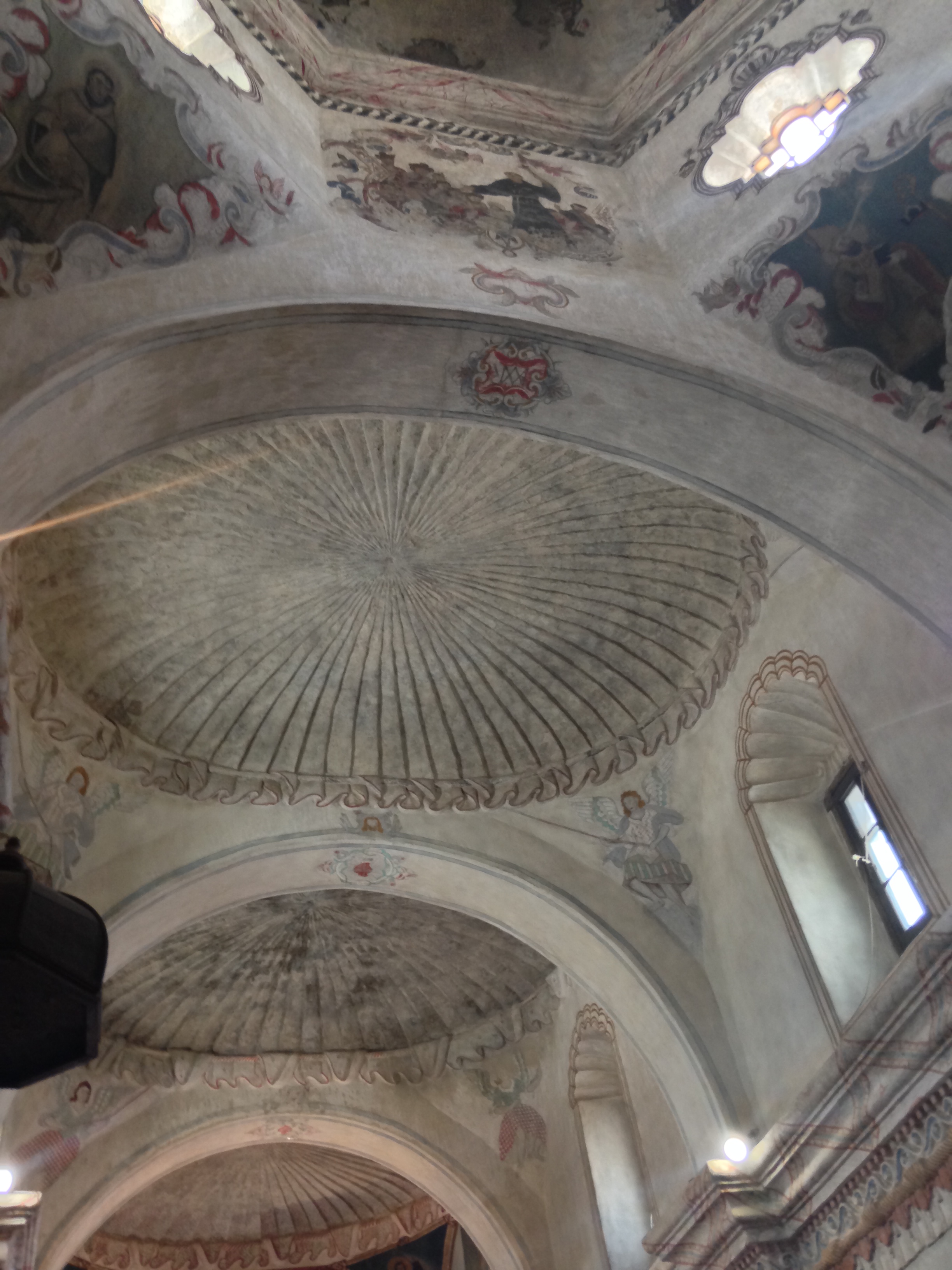 Along the top rim of the wall of the entire Church there is a rope to carry us to heaven. The rope throughout the Church is a Franciscan theme.