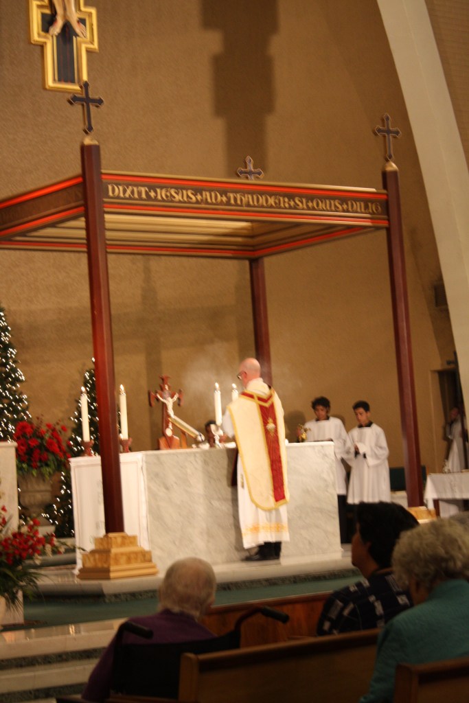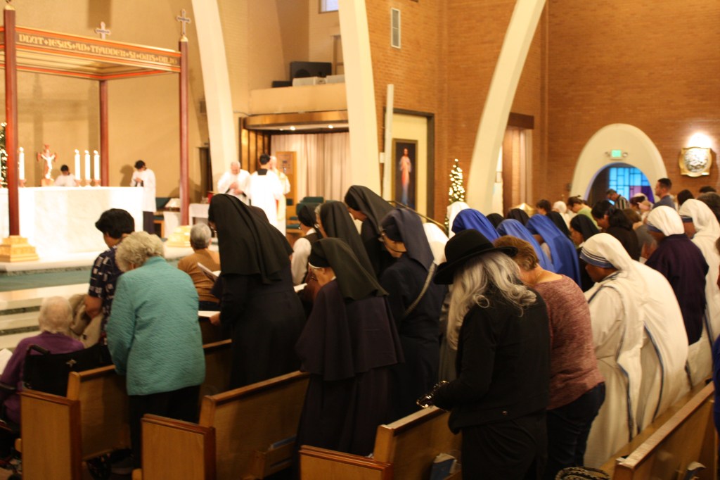 The Holy Sacrifice of the Mass and the Eucharist bring us to our knees to honor God, to thank Him for all the blessings and to beg Him for Mercy as we face ourselves as we really are, imperfect, sinful, in need of His grace. Gazing upon Christ crucified, we become ever aware of the Father’s love for us that He gave us His only begotten Son, who became incarnate, a man. From the womb of the Blessed Virgin Mary, He became one of us so that we would be united to Him, saved by Him, configured to be like Him, humble. His obedience, chastity and poverty teach us how we are to give and to love. We cannot do this without Him. We find strength as we gaze upon Him.