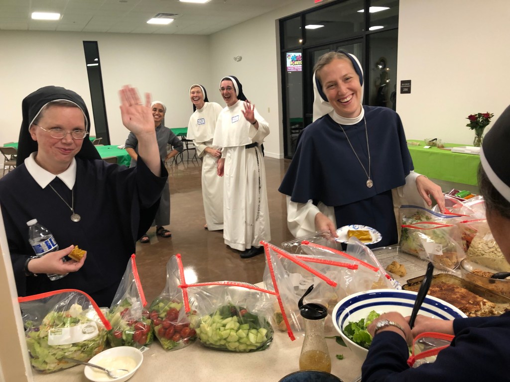 There are also new Sisters who have moved to Phoenix of the Religious Sisters of Mercy of Alma, MI, the Parish Visitors of Mary Immaculate, the Society of Our Lady of the Trinity, the Dominican Sisters of St. Cecilia from Nashville Tennessee, the Dominicans of Mary, Mother of the Eucharist, the Servants of the Plan of God, the Sisters of the Sacred Heart of Jesus and the Missionaries of Charity. Not all of these Sisters were gathered together, but many of them were for a potluck dinner to get to know each other. They had a fantastic evening in which many friendships blossomed and new faces warmly welcomed.