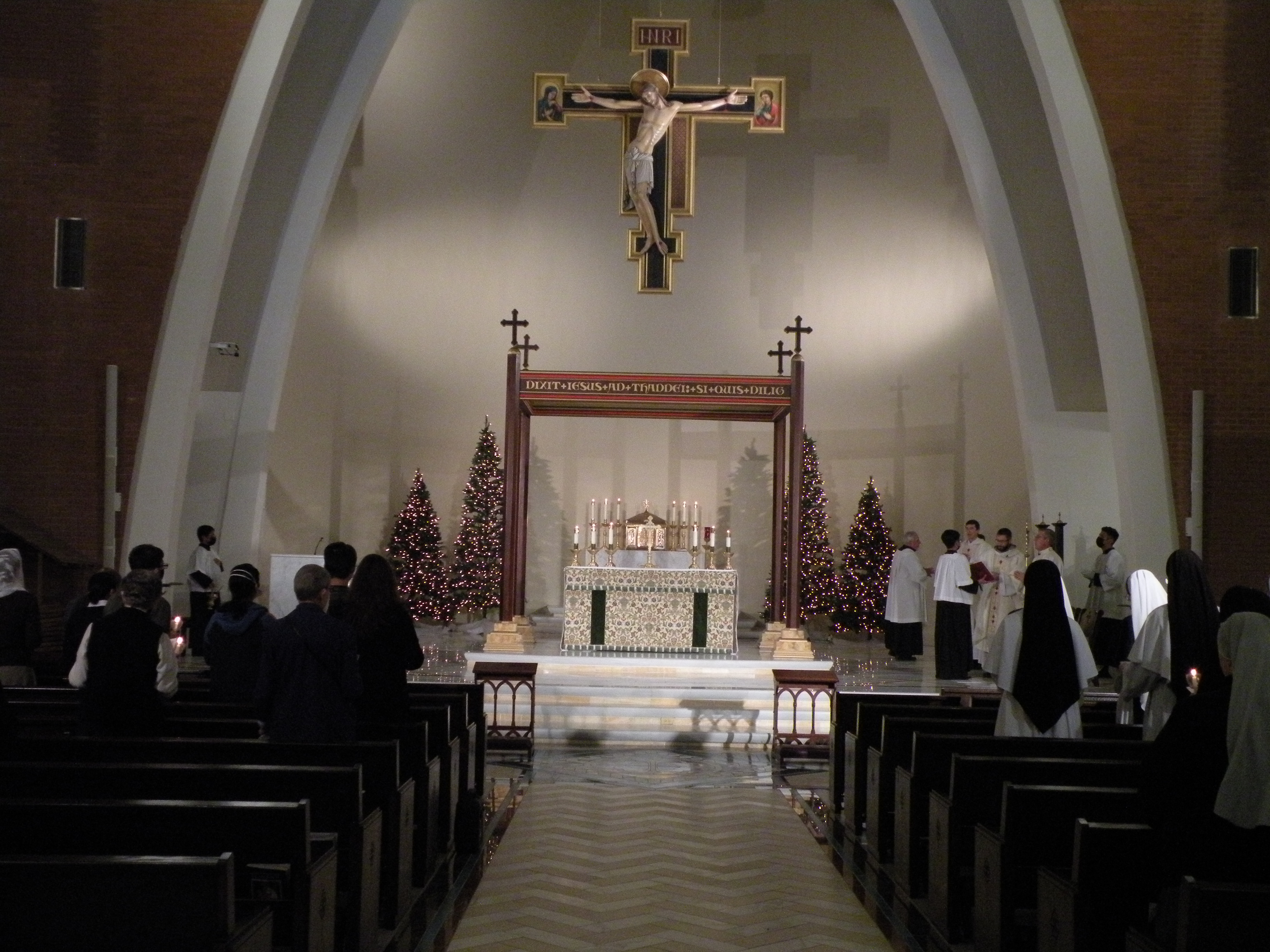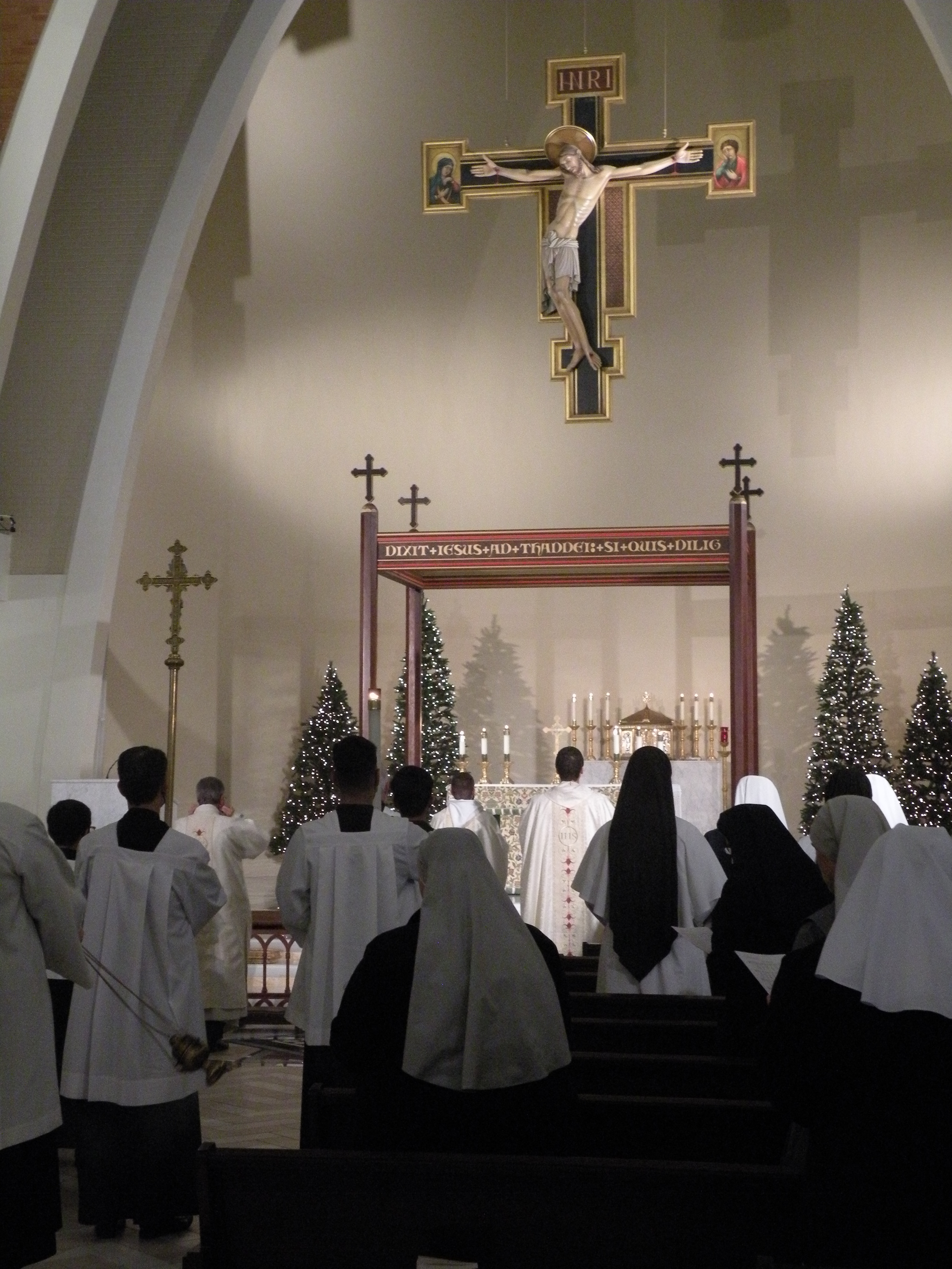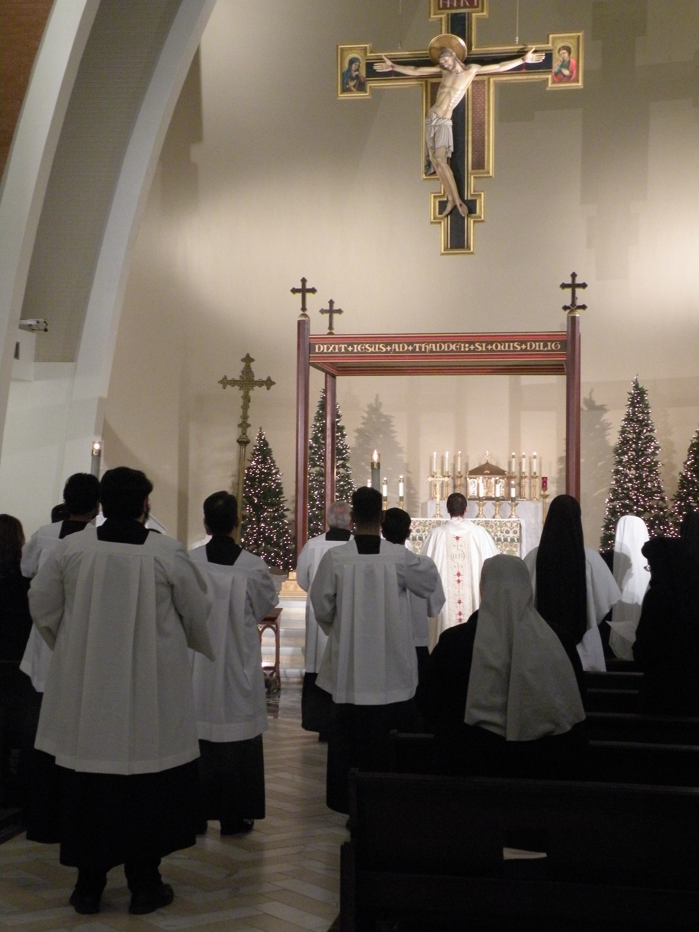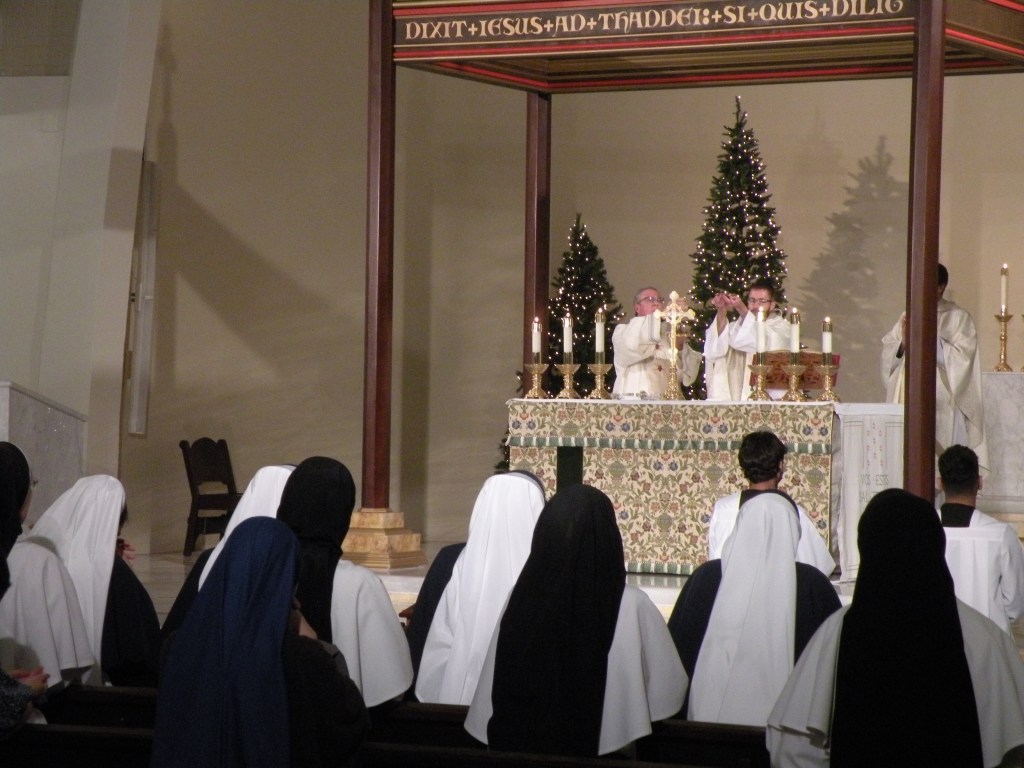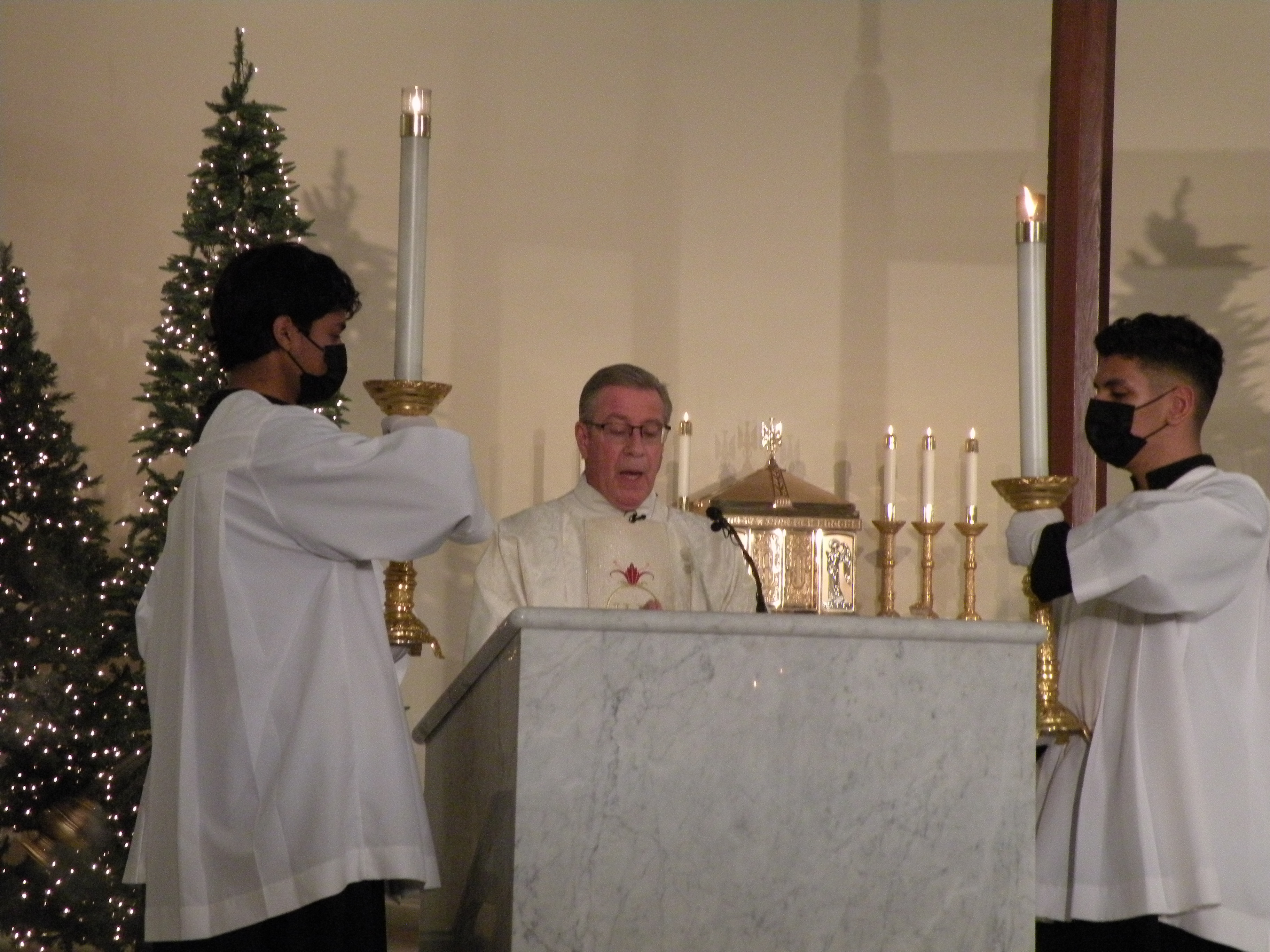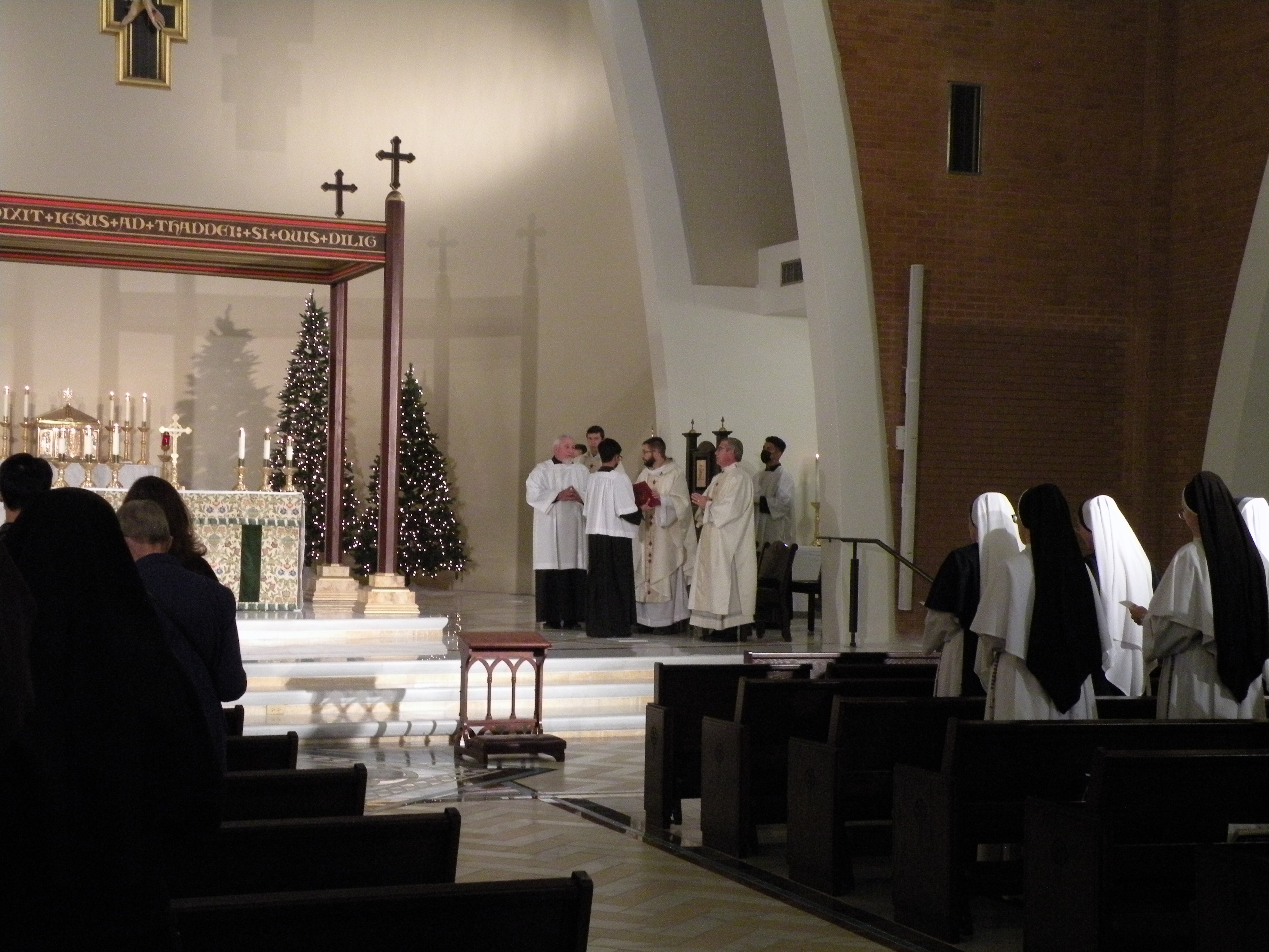 Father Eugene Mary of the Trinity blesses the candles before the candle lit procession for Mass.