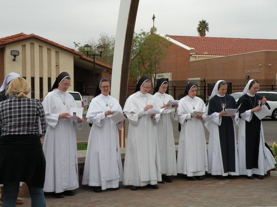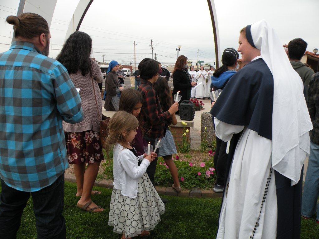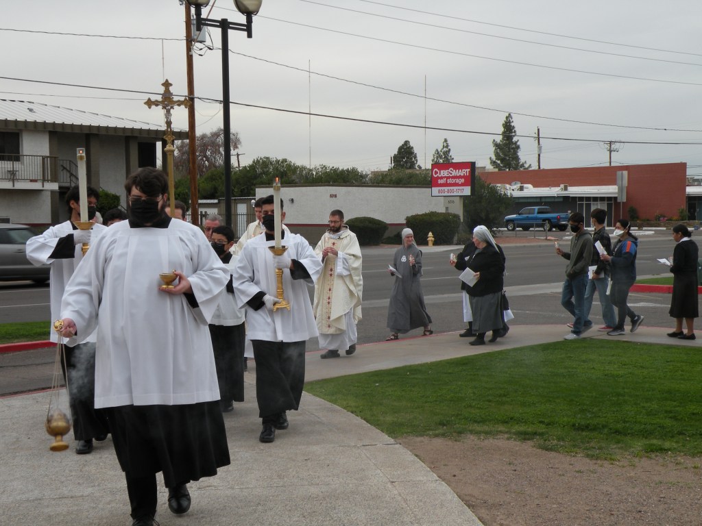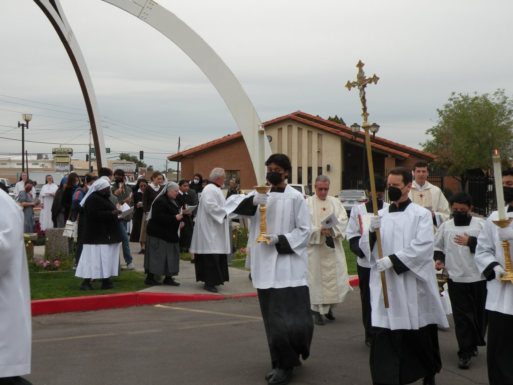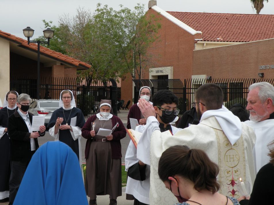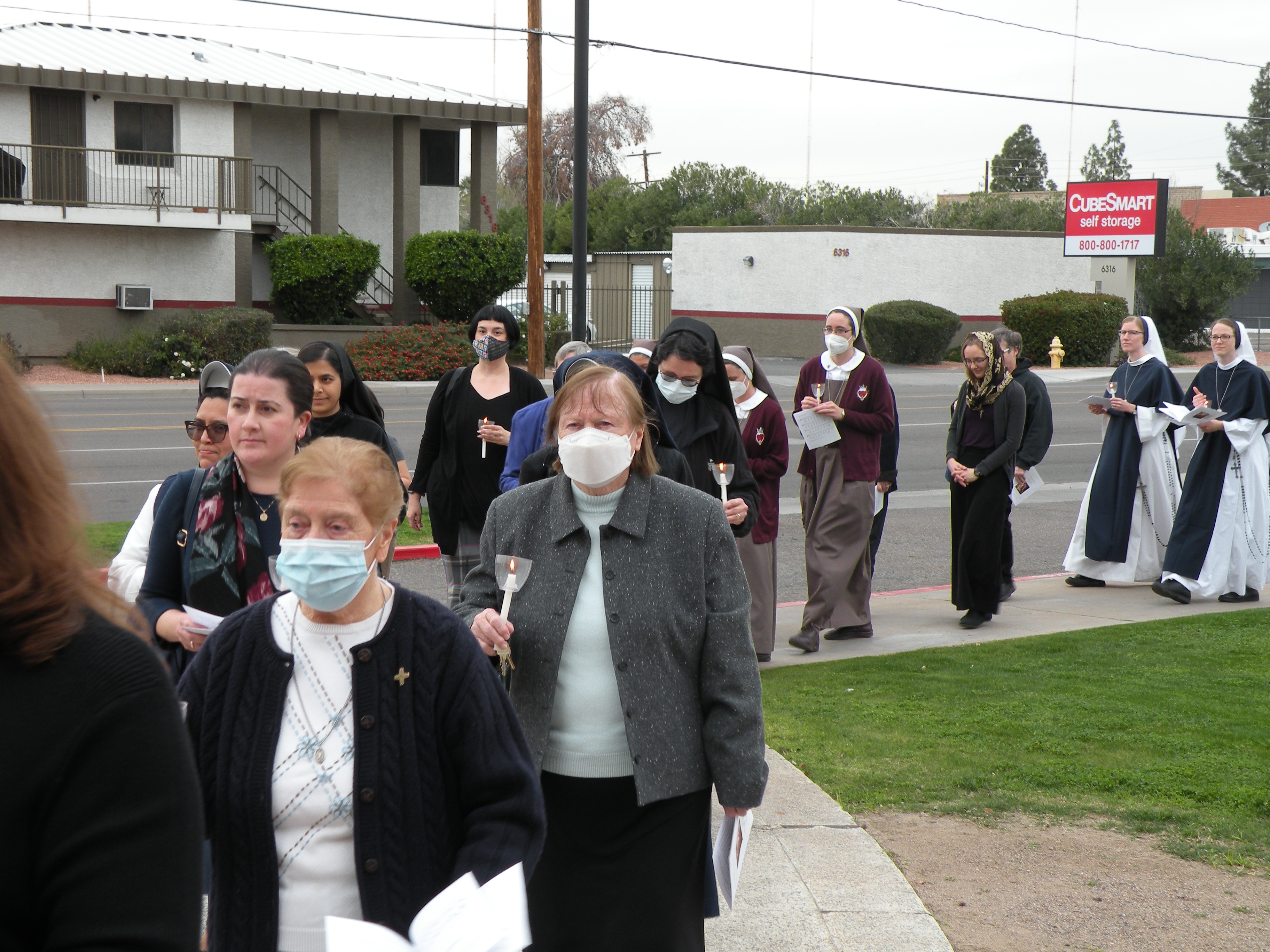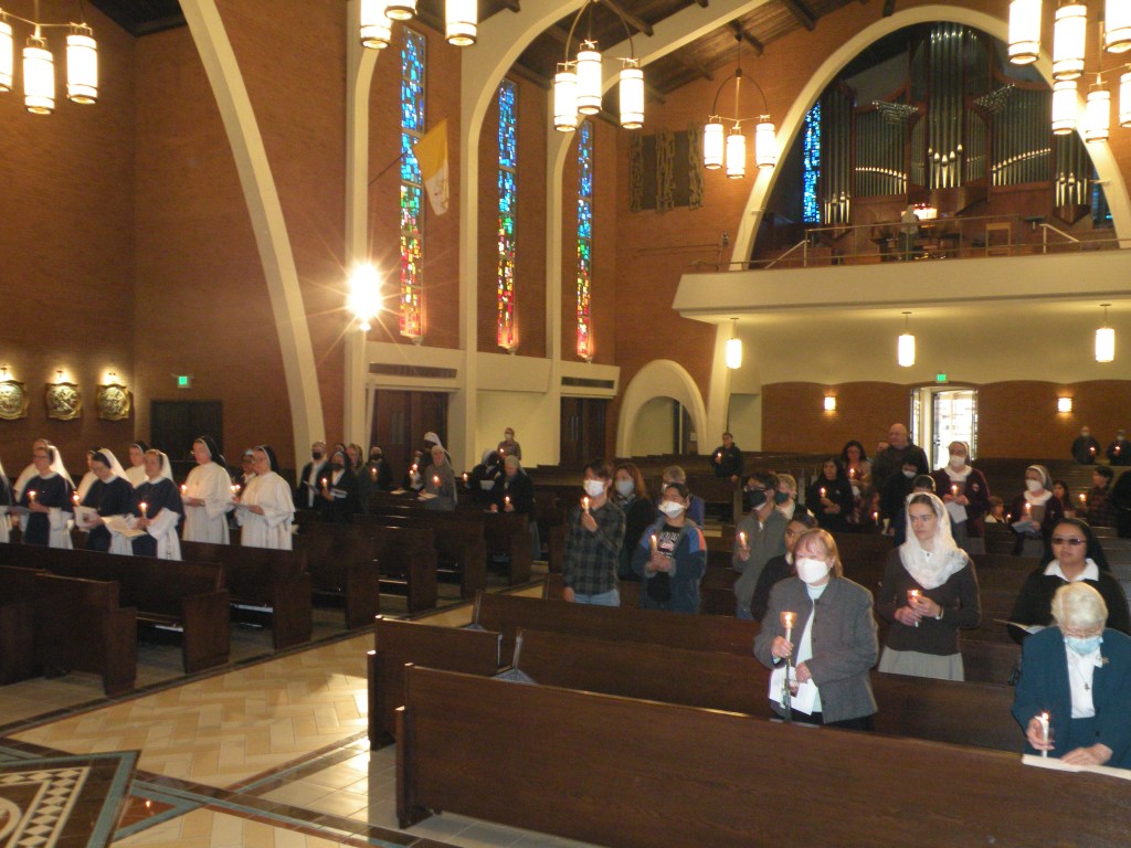 On February 1, we celebrated the Feast of the Presentation of the Lord and the World Day of Prayer for Consecrated Life at Ss. Simon and Jude Cathedral in Phoenix with almost 40 Religious of the Diocese. The Candlemas was a beautiful celebration to honor all who have dedicated their lives to God as Consecrated persons: Religious Sisters, Brothers, Priests and Consecrated Virgins. The celebrant of the Mass was Fr. Eugene Mary of the Trinity Florea, our Diocesan Hermit, who lives a life of prayer in solitude and service. All who attended gathered to pray together for all who are Consecrated to God and to renew their Vows. Here are beautiful photos of this Candlemas that depict the reality of shining the light of Christ to others.