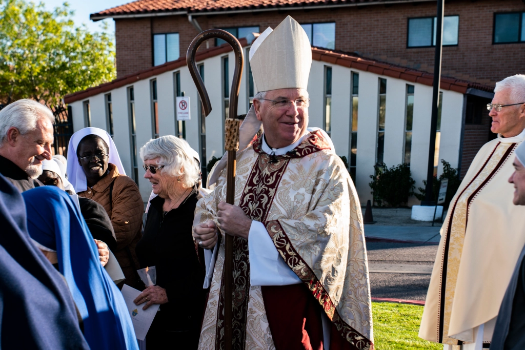 The World Day of Prayer for Consecrated Life was celebrated by Bishop John Patrick Dolan and the Religious and Consecrated Virgins of Phoenix at Ss. Simon and Jude Cathedral on Sunday, January 29, 2023 with a beautiful televised Mass and reception. The gathering and time together was a precious gift that we will all treasure. We all had a jovial time together with Bishop Dolan. Here are the photos from this joyous occasion: