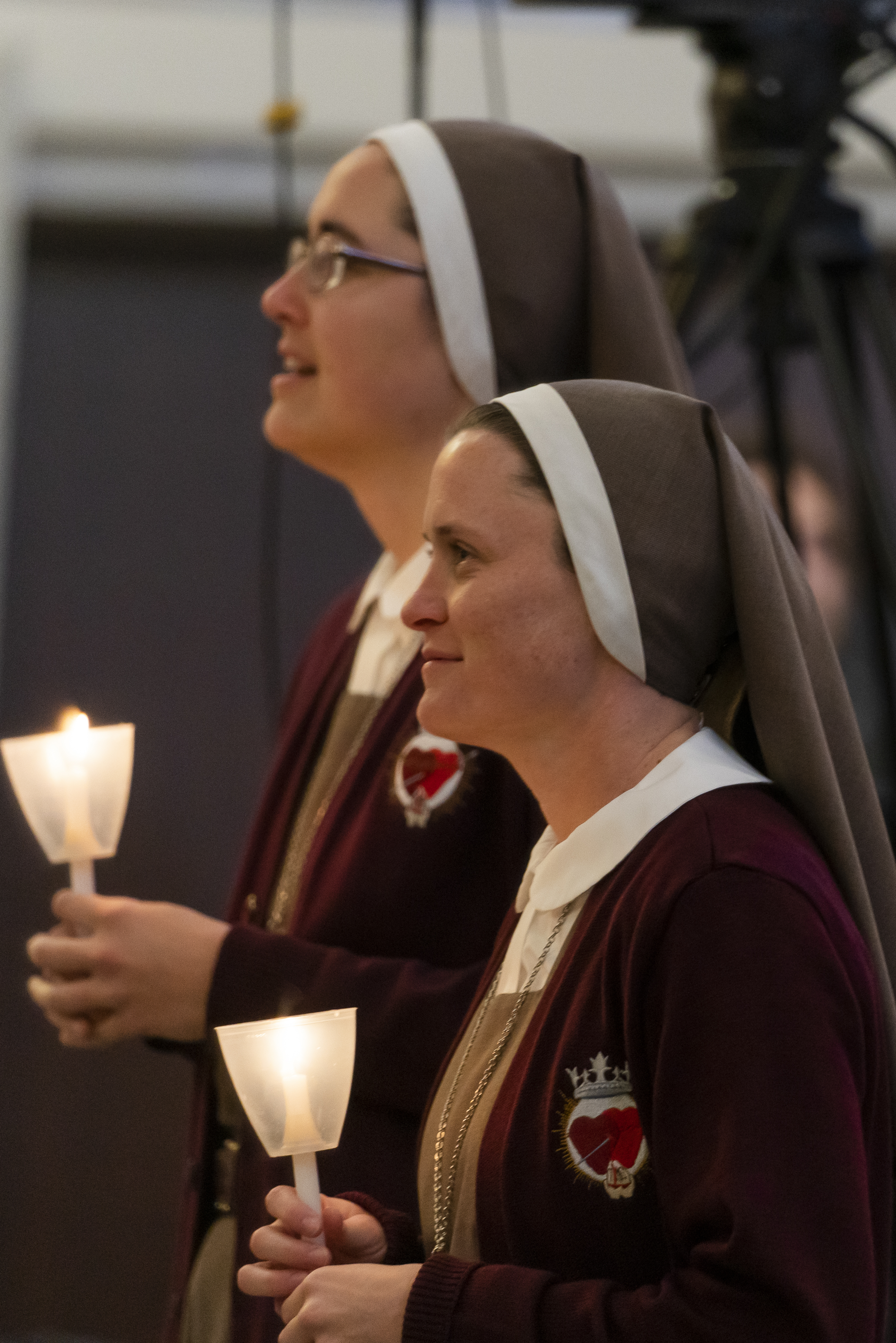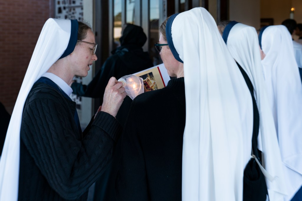 The Candle Procession with the Sisters of Life, Religious Sisters of Mercy followed by Deacon Bogart.
