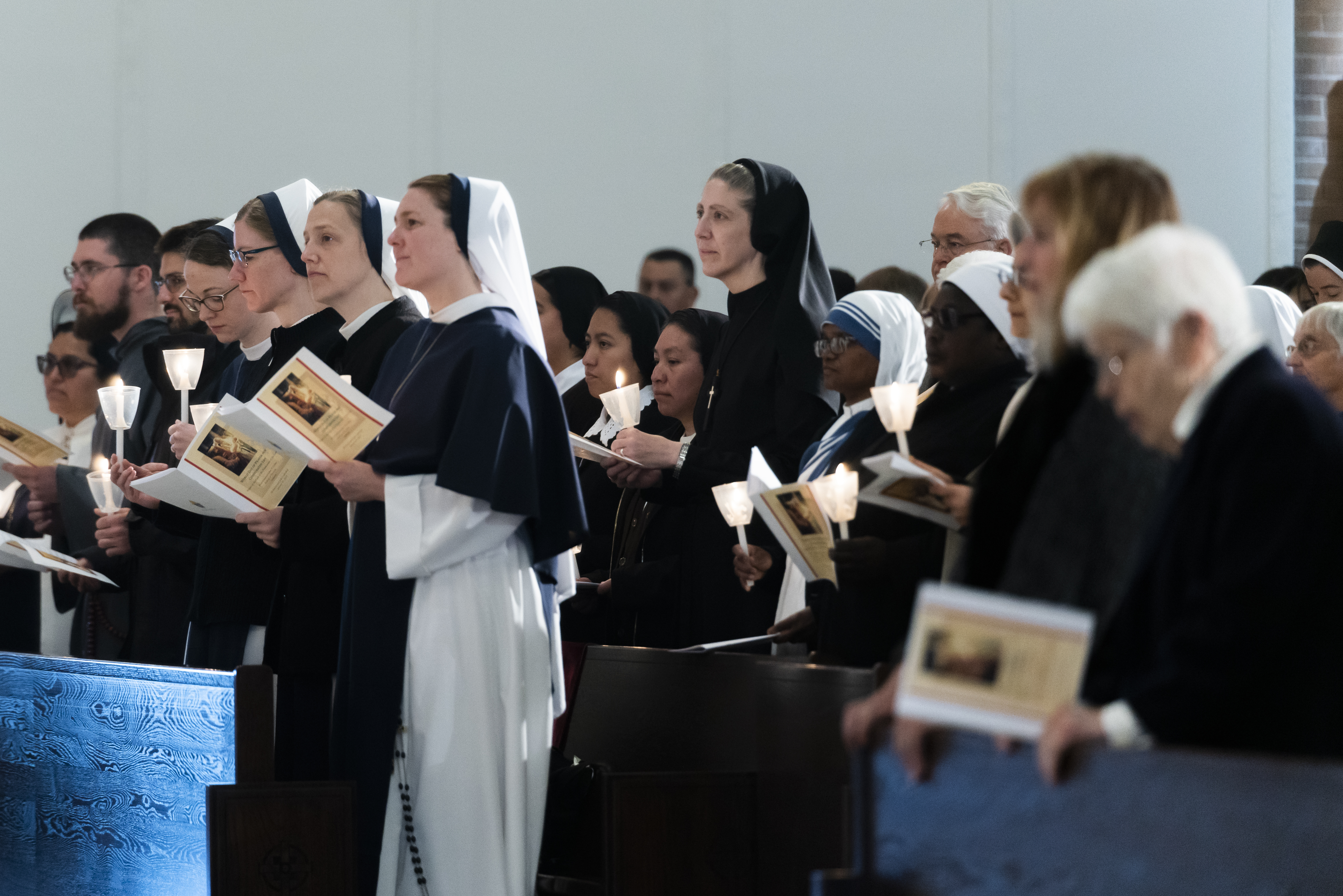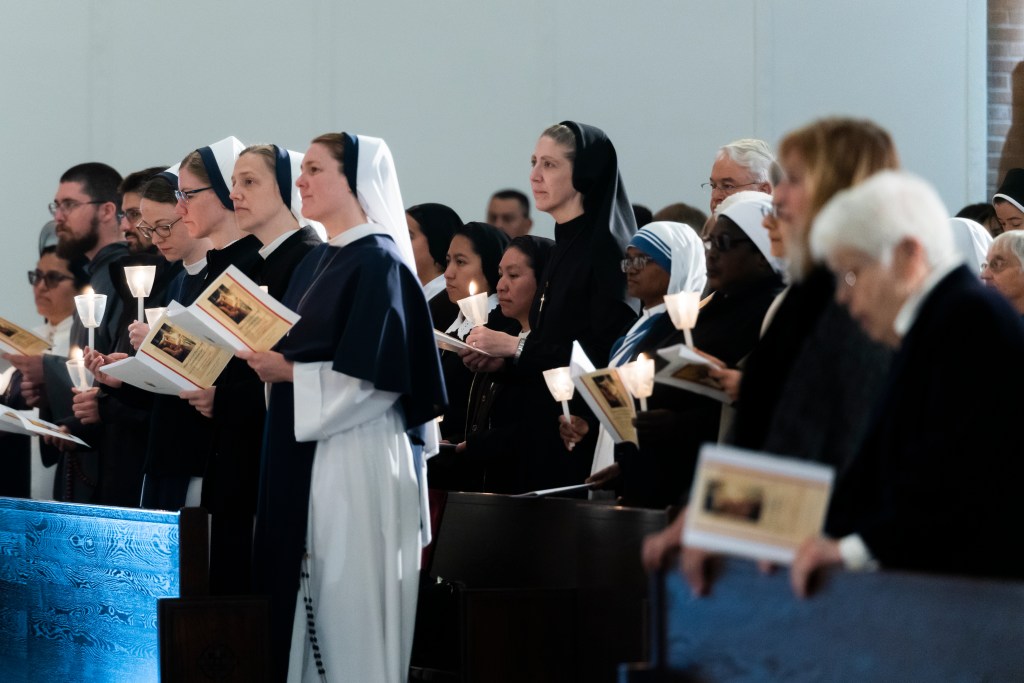 The Society of Jesus Priests and Novice, Sisters of Charity of the Blessed Virgin Mary, Missionaries of Charity, Consecrated Virgin Claudia Edith Lopez, Sisters of the Sacred Heart of Jesus from South Sudan and other Religious holding their candles.